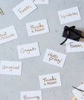 A simple celebration – ready to be shared. The Congrats mini cards are printed with smooth gold foil on 100% recycled paper and come in packs of identical messages – timeless, joyful, and easy to use.