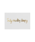 For what truly matters. The Truly Madly Deeply mini cards are printed with smooth gold foil on 100% recycled paper and come in packs of identical messages – sincere, intimate, and meant to be felt.